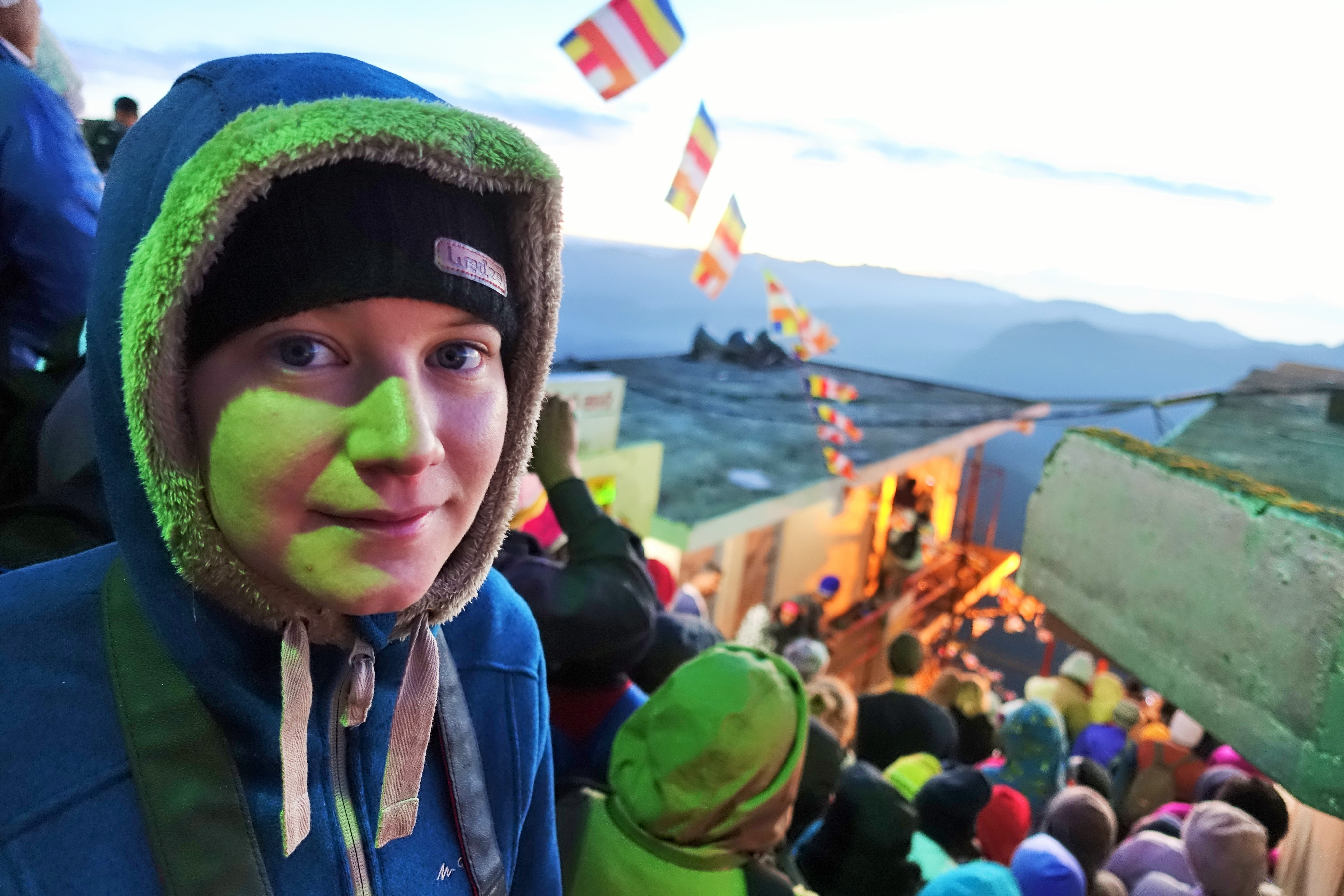 Enfin, au bout de 3h30 de montée, il est 5H30, on est en haut !! La foule s’agglutine donc autour des meilleurs spots pour admirer le lever de soleil. Et à 6h15, on oublie très vite les difficultés de l’ascension car le spectacle est époustouflant. Les couleurs changent, le soleil se lève, c’est magique !!