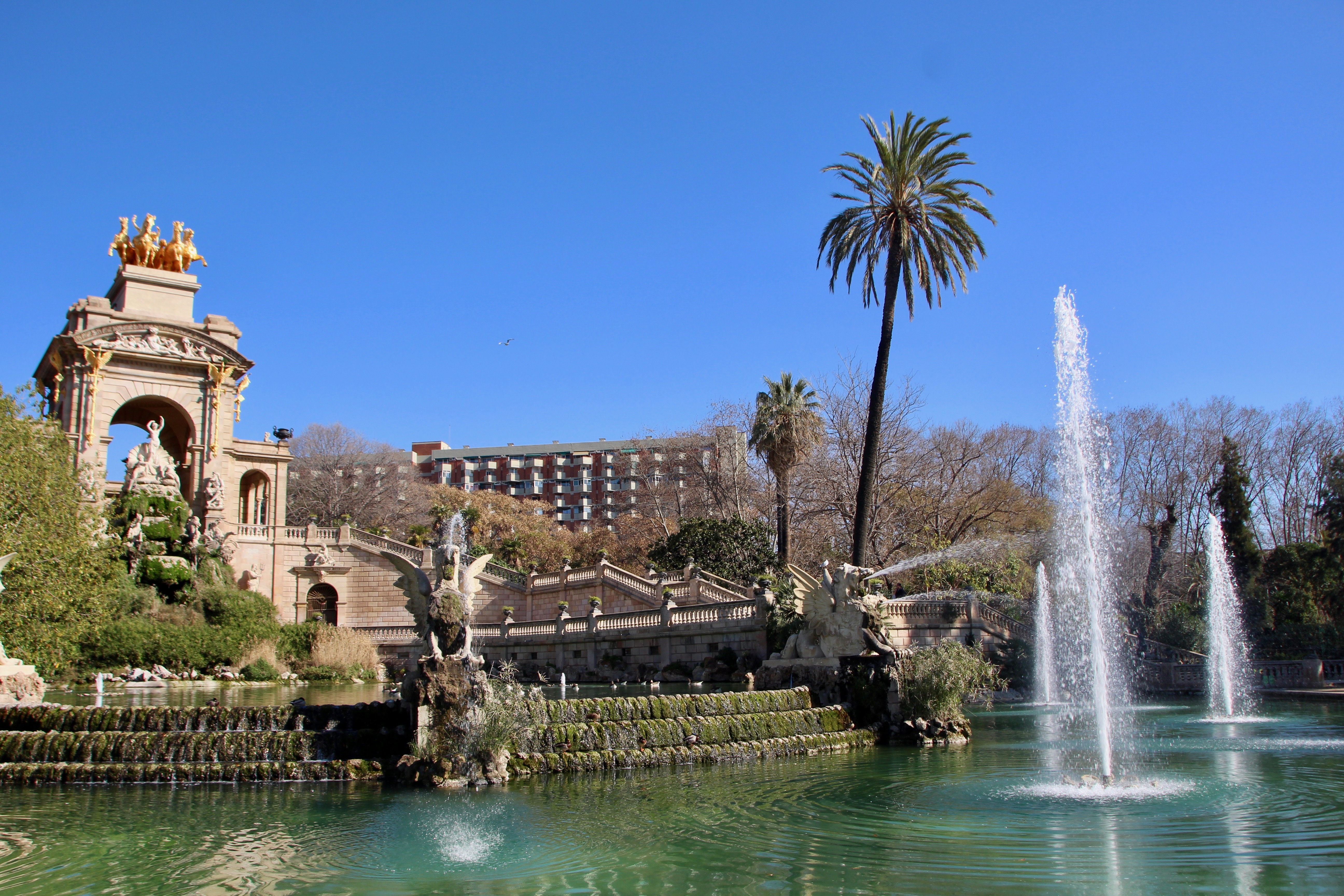 A l’Est de Barcelone, se trouve le parc de la Ciutadella. Peu connu des touristes, cet espace de verdure est le poumon de la ville : nous y croisons beaucoup de coureurs et de familles barcelonaises. Nous nous arrêtons quelques temps au niveau de la fontaine qui a d’étranges ressemblances avec la Place d’Espagne de Séville.