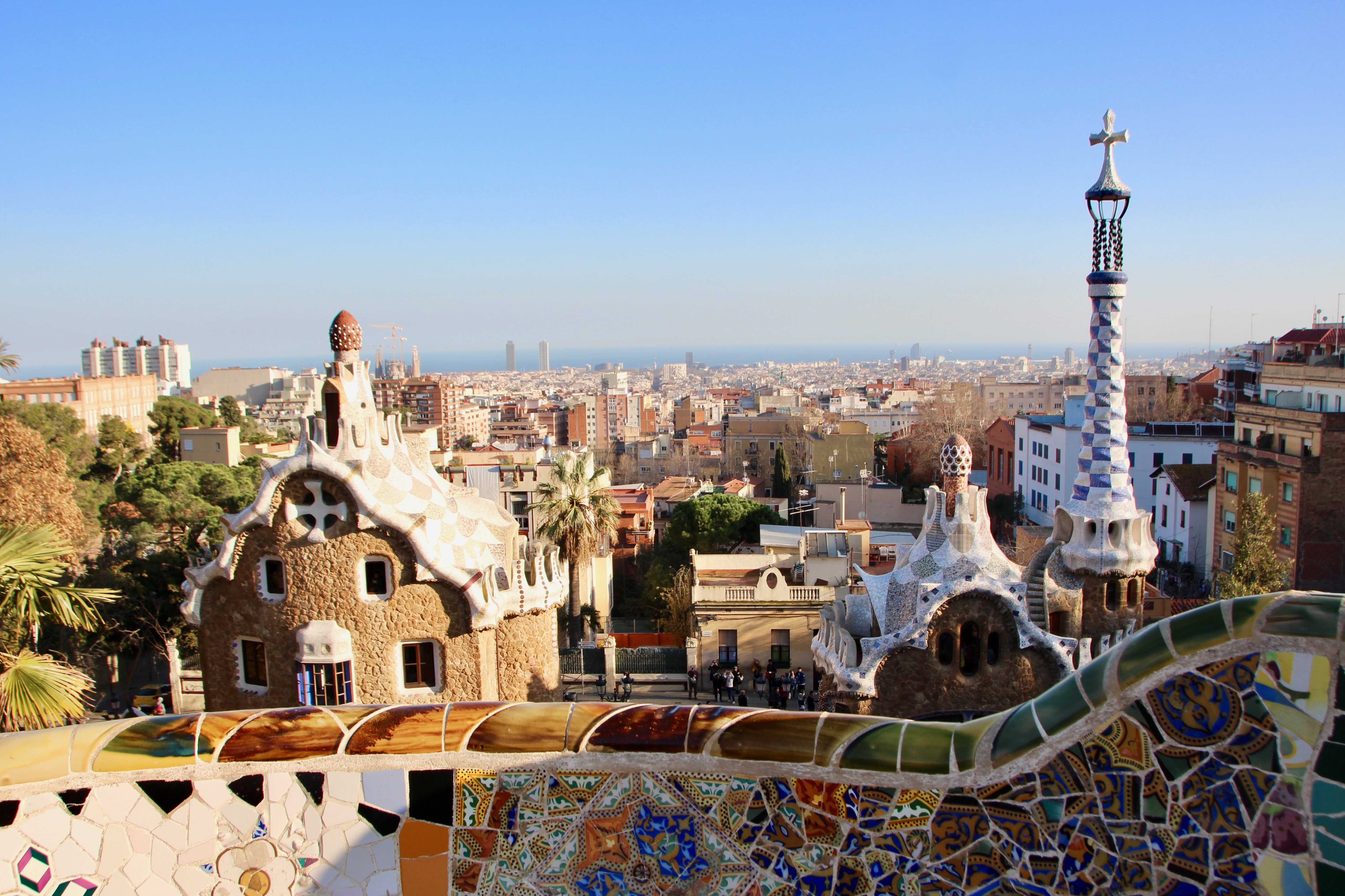 Plus connu, le parc Guell offre une vue à 360° sur Barcelone et les alentours. C’est toujours un plaisir de se balader dans ce parc, surtout aux heures où le soleil se couche. Les couleurs sont magnifiques et offre un panorama magique.